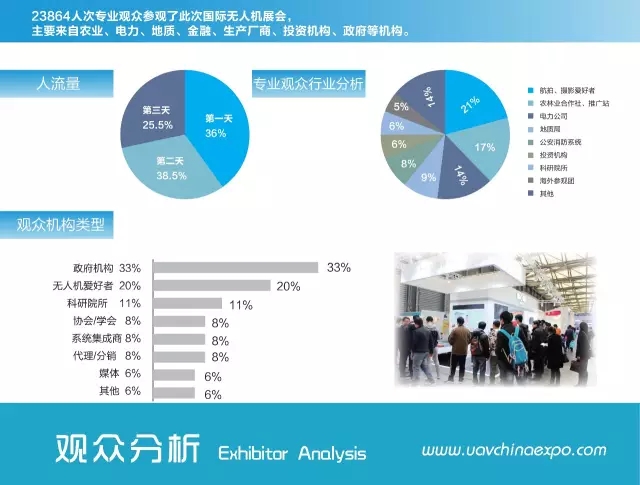 「UAV CHINA 2015 国际无人机展」于2015年12月在上海圆满闭幕,本次展会以"创新、智能、发展"为主题,展示内容涵盖无人机整机以及无人机的气动、控制导航、通信等配套设施技术与产品,是无人机生产制造、技术研发等主流企业和机构的最强集结。「UAV CHINA 国际无人机展」作为无人机领域综合学术交流及商业展示平台,将致力于加强无人机研制、生产、商贸、教学等各领域的交流与合作,为中国无人机行业市场挖掘出更大的发展空间和新商。